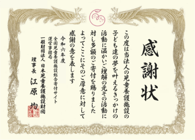 Type 3,4,5のご寄付に関しましては感謝状にの贈呈式を行わせていただいております。