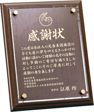 - 日本児童養護施設財団から「木製感謝盾」を贈呈
