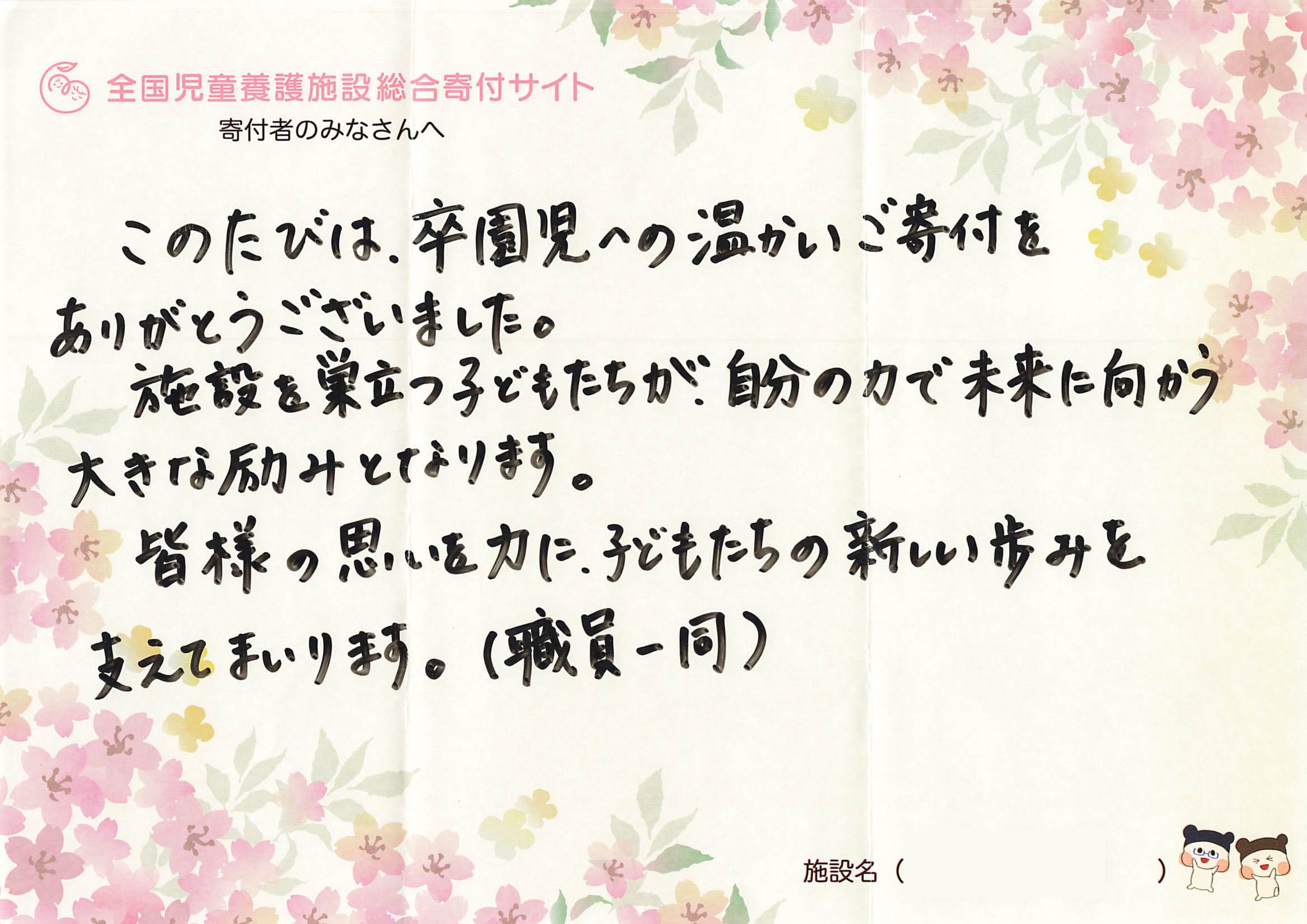 施設の職員さんからのお礼のメッセージ①